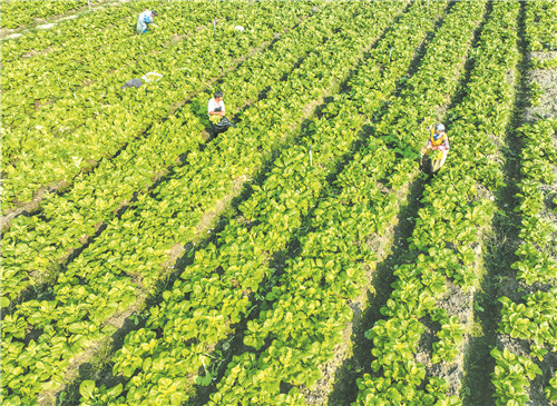農(nóng)民在采收頭茬秋冬播蔬菜